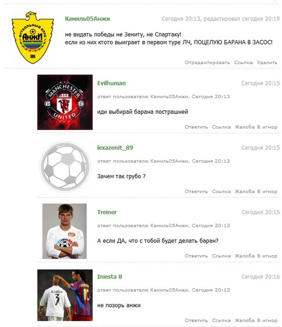 Болельщик Анжи сомневается в успехе Спартака и Зенита в Лиге Чемпионов (см.файл)
