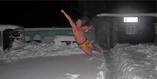 Прыжок в сугроб из парилки