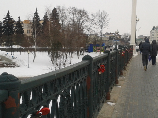 Весь мост увешан свадебными замочками))) Ключи тещам наверное отдают))