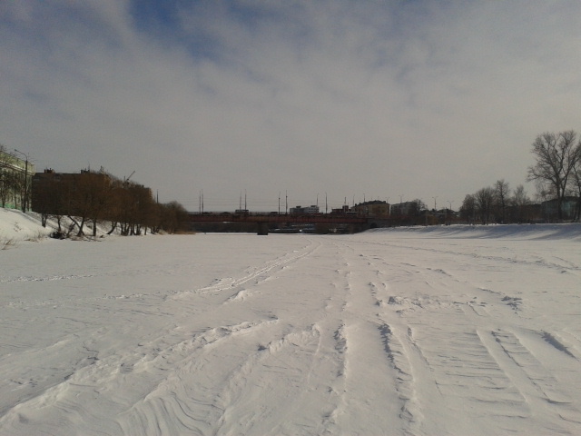 я ровно по средине на льду реки Ока