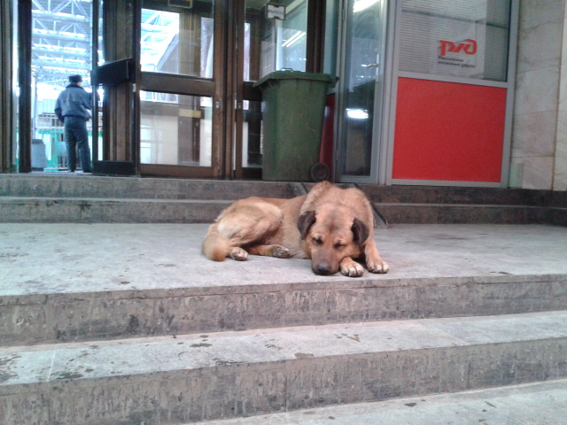 Вот...не хотите чтобы я что то фотал,я сам вам собачку сфотал...грустная такая дворняга...прямо на ступеньках на входе на перон...