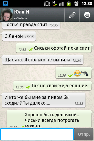 Вот такой вот диалог прямо щас..пока вотку с молоком и огурцаме пью)))