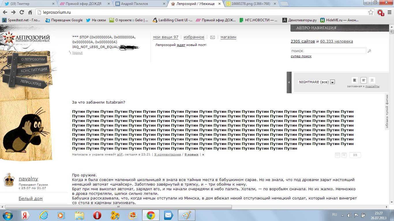 Главная на Лепре меняется каждую секунду... даже скрин не успеваю делать....))))))))))))))http://leprosorium.ru/