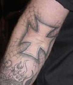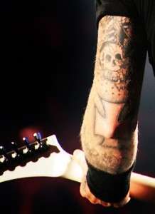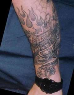 Если присмотреться,то можно увидеть надпись "Papa Het"(эта тату подчеркивает его семейное положение, у него трое детей)