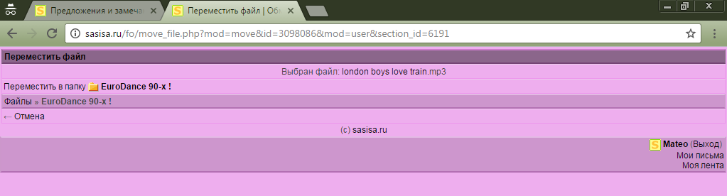 Нет возможности переносить файлы из одной личной папки в другую. Кнопка [Переместить] есть,а перемещать некуда,т.к. другие папки не отображаются.