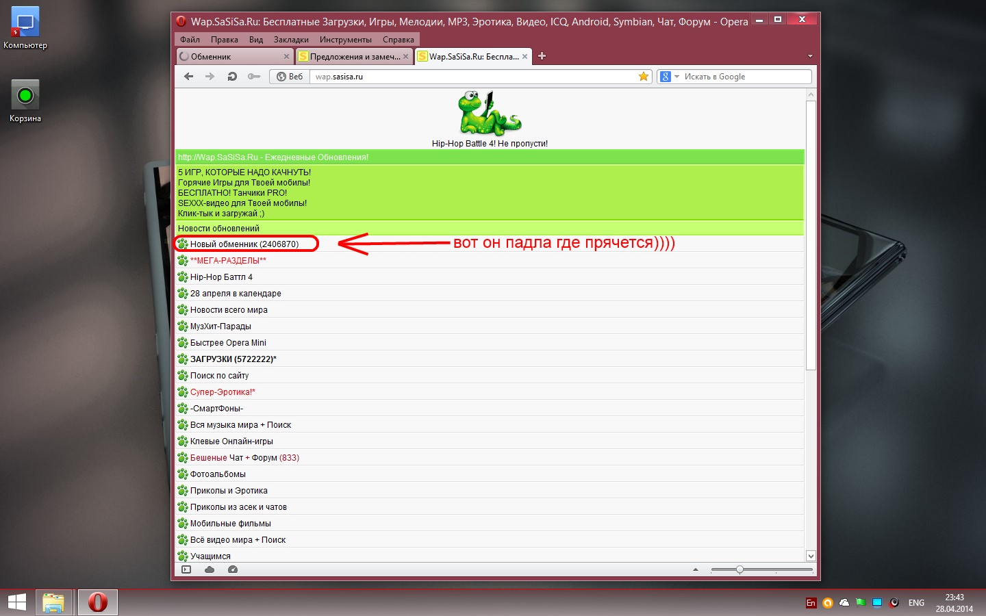 Подскажите пожалуйста можно ли зайти на этот сайт с компа. С телефона качать в обменнике не могу так как слабый, а с компа не могу найти сам обменник :( ПОДСКАЖИТЕ ПОЖАЛУЙСТА