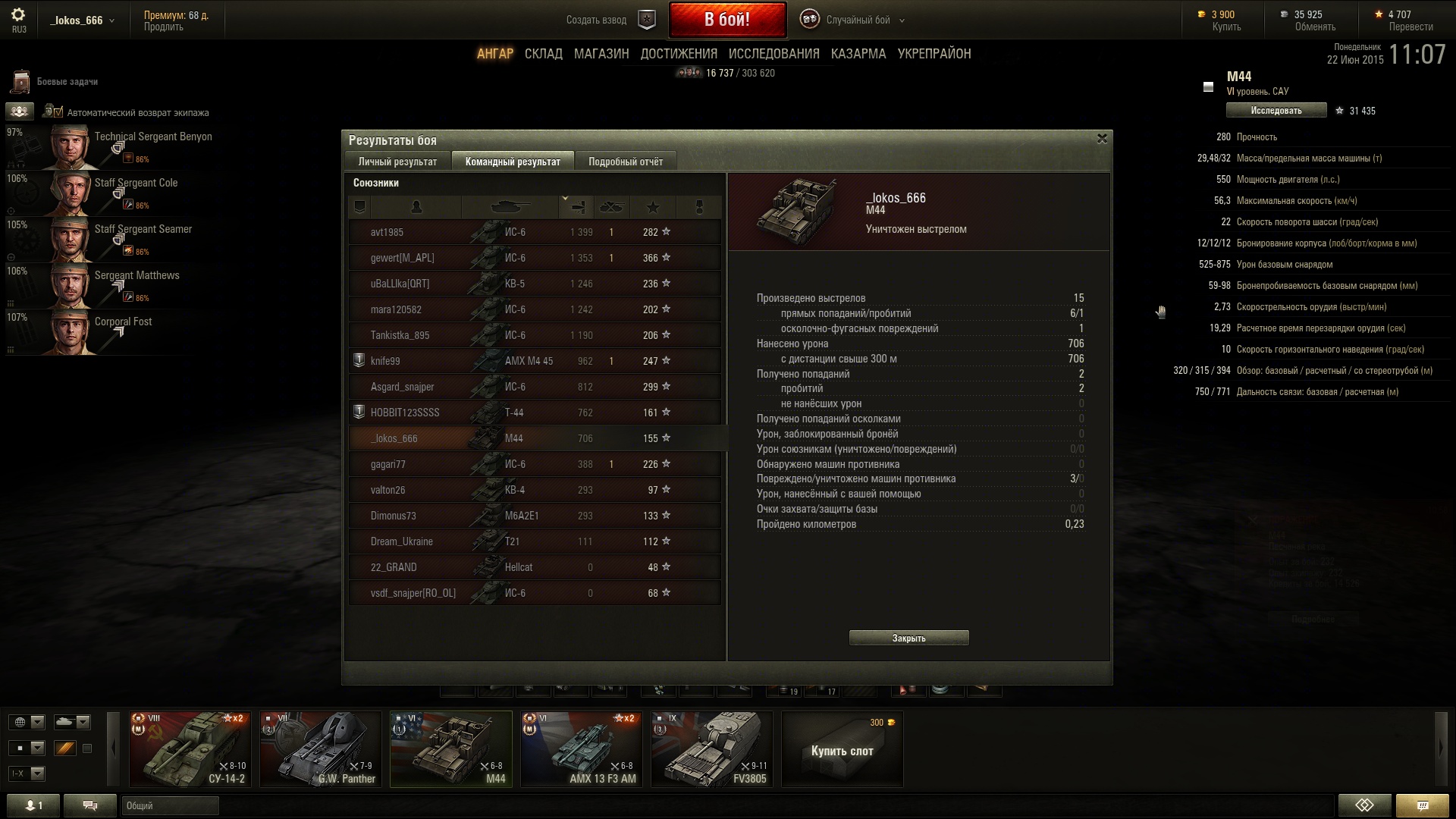 на М44 чуть больше 700 среднего урона.. В целом арта дерьмовая, хотя залетают иногда веселые шоты)) полгода как сдал в утиль))) по мне так хуммель куда приятнее))