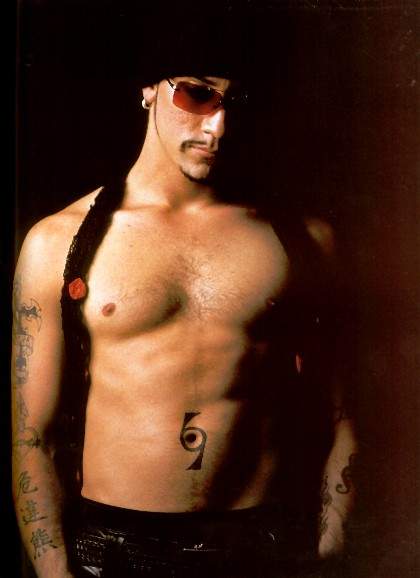 Да на нем живого места нет-его любимые тату:дракон,маска