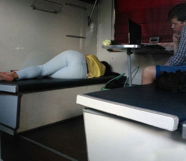 Забавно, как мы все спим по разному. Я на боку, мой сосед на спине, моя бывшая со всеми подряд... Такие дела.