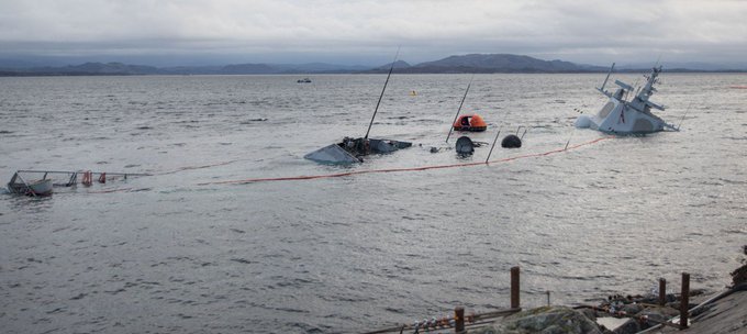 Норвежский фрегат, столкнувшийся с танкером, в итоге затонул. Замечательно учения прошли.