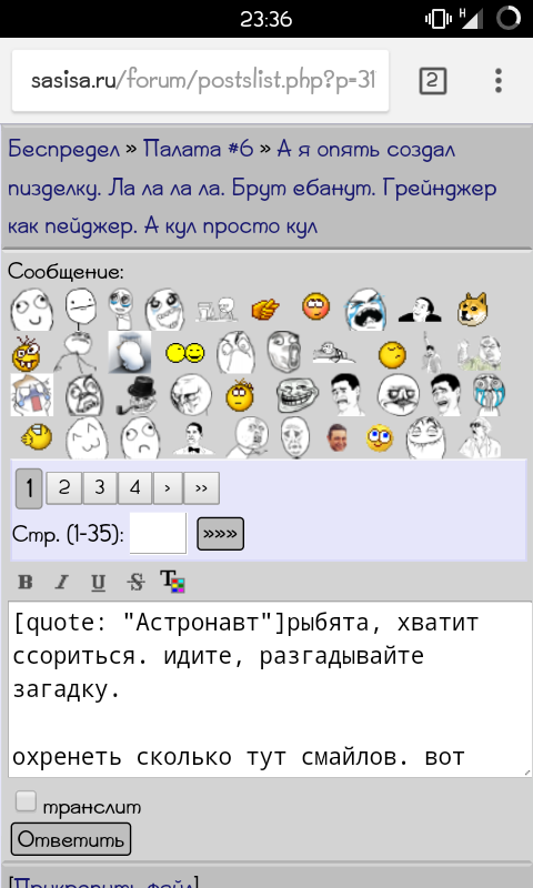 охренеть сколько тут смайлов. вот скажите, вы как-то запоминаете страницы с вашими любимыми смайлами, или просто помните их кодировку? 135 страниц этож листать не перелистать.