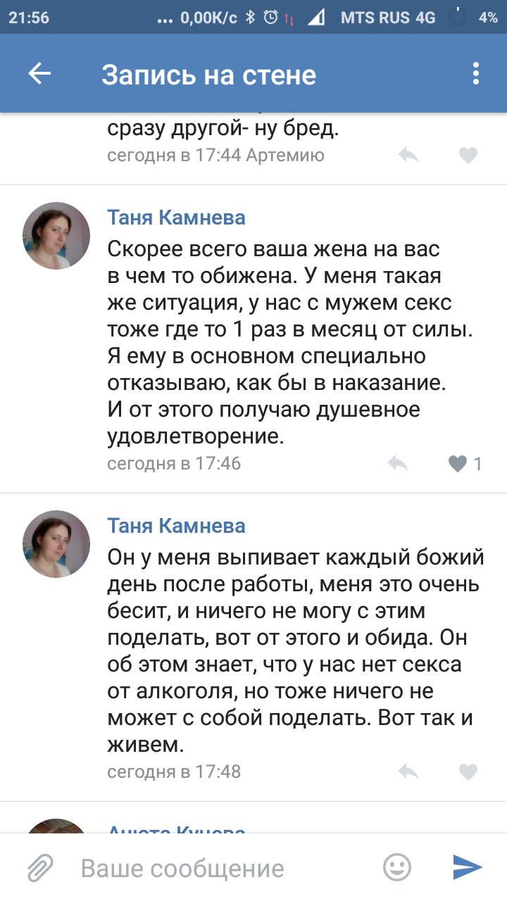 ти странная. брак это брак, а люди в нем остаются при своих интересах. часто давать вечно пьяному мало кому понравится, так же как отказываться от ежедневной выпивки ради того что может быть баба снизойдет и даст два раза в месяц вместо одного - неразумно. если не могут сесть и договориться о компромиссе, то нормально и так