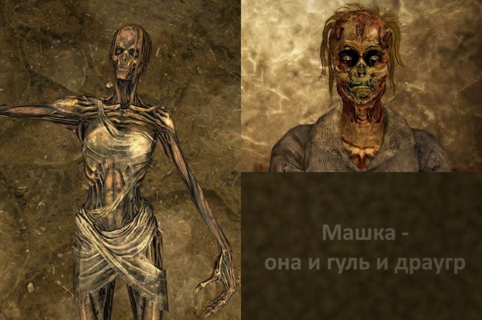 гули это бывшие люди, мутировавшие из-за радиации, а драугры это мертвецы, которые ходят и защищают честь предков.