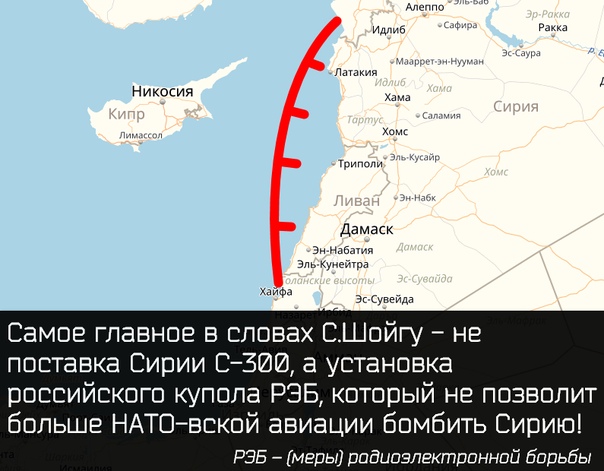 Все СМИ делают акцент на поставку Сирии С-300. Но, это только для уничтожения израильского агрессора. Главное, и куда более важное в словах министра обороны другое - Россия по факту закрыла возможность НАТО-вским агрессорам бомбить Сирию со стороны Средиземного моря!!