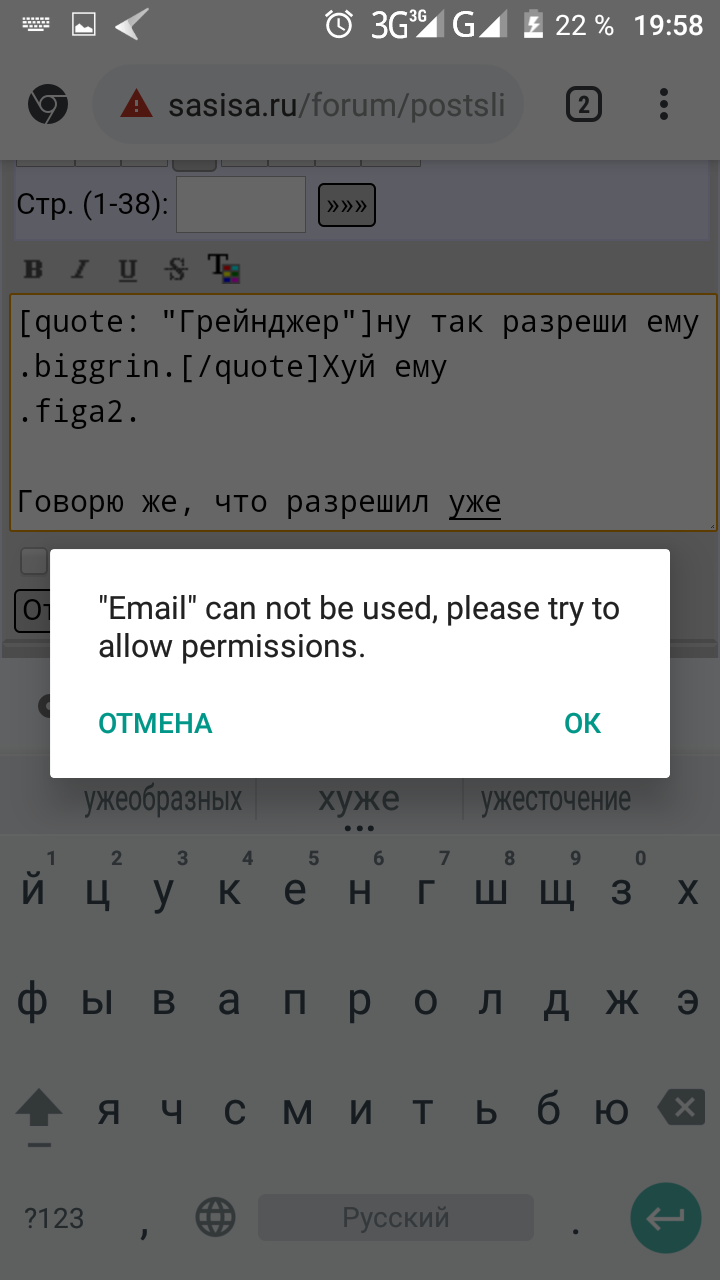 Эмейл хочет каких-то разрешений, все они даны, но одно включаться не хочет. Видимо этого разрешения ему как раз и не хватает, что он решил меня заебать