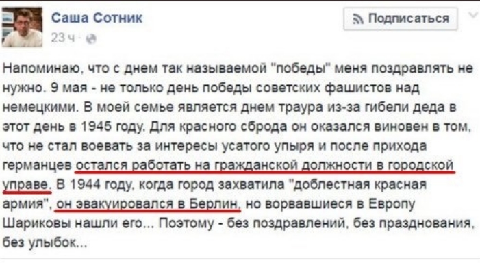 Вот только факты говорят,что стреляли со стороны майдана.6 лет прошло,следствие буксует,деревья с пулями на майдане власти спелили,а по ним можно определить примерную траекторию пуль и т.д. это говорит о том что власти не хотят обьективного расследования.Беркут не призновался,более того приказов о применении не было.Ещё раз пули из которых убиты люди на майдане,не соответстуют оружию которое стоит на вооружении Беркута,тем более его применение не разрешали против протестующих.Есть много видео где видно у сторонников майдана оружие.Повторю есть кадры где в присутствии Парубия,из высотного здания гостиницы(которое во время майдана было захвачено сторонниками майдана) выходят сторонники майдана,с оружием в том числе снайперским.Да и крики майдановцев "не стреляйте нам в спину" говорят о многом.Да и кадры где майдановцы пытаются уйти из под обстрела со стороны майдана тоже есть.