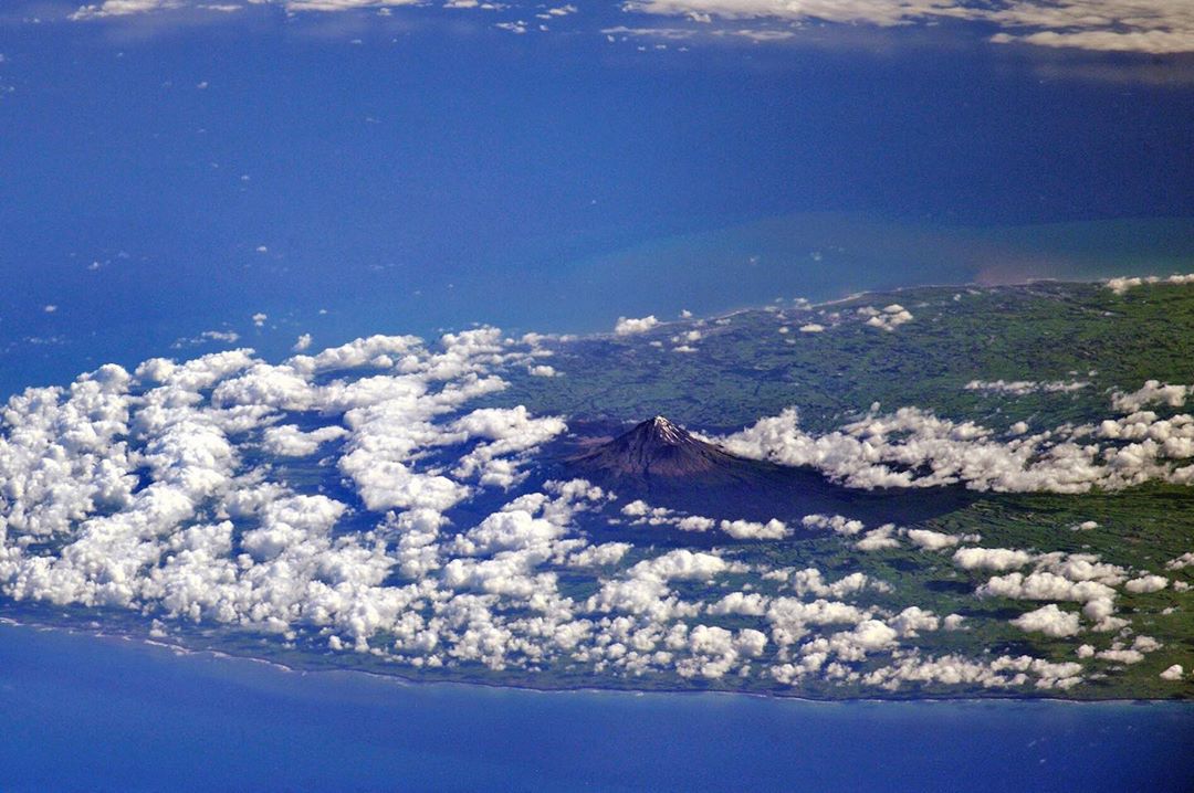 На западе Северного острова Новой Зеландии, подобно одинокому великану, стоит вулкан #Таранаки. Возвышаясь над морем облаков, он часто кажется миражом, поскольку иногда полностью скрывается под ними. Однако в ясную погоду заснеженная вершина высотой 2 518 метров видна даже с борта Международной космической станции ????