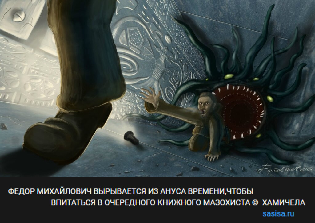 фёдор михалыч вырывается из ануса времени,чтобы впитаться в очередного книжного мазохиста