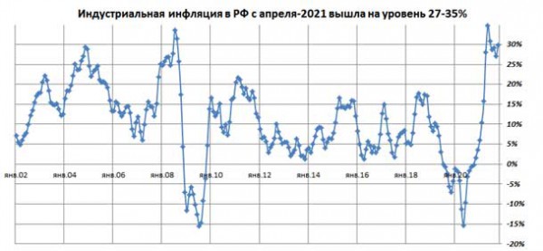 Нашел в сети интереснейший график - индустриальная инфляция в РФ. Это рост стоимости производства товаров засчет роста цен на расходные материалы, ремонт, сопутствующие траты на производство. Вынужден согласиться с Егерем - рост цен был неизбежен.