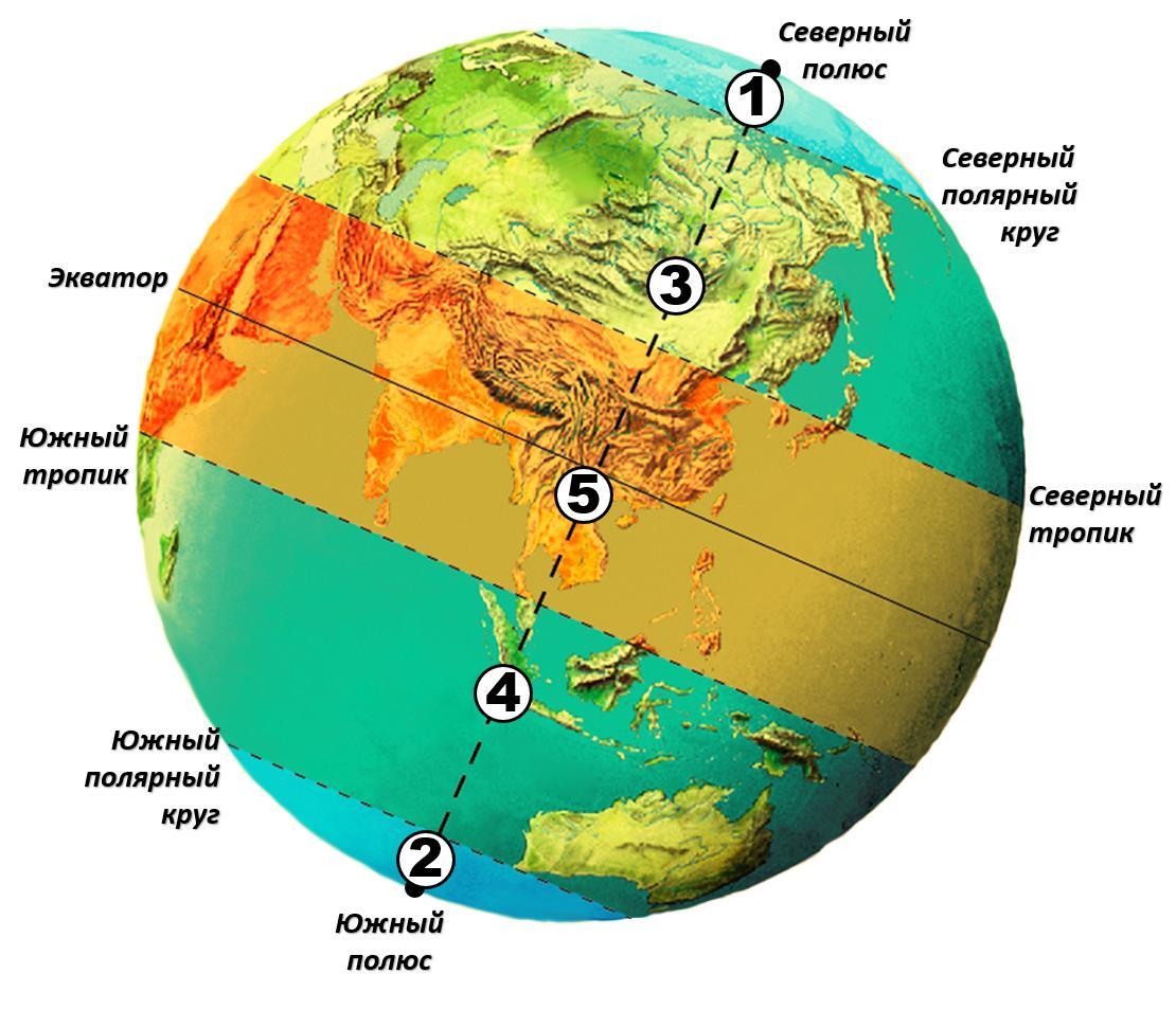 А где лучи Солнца? Тут перпендикулярные лучи явно не попадут на экватор и северный тропик, так как пропорционально всё нарисовано.