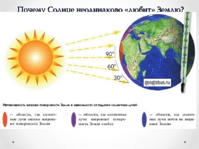 Где лучи от солнца. Падением лучей солнца прямолинейными и под углами объясняют климатические зоны. Прямые сильнее согревают Шар, под углом менее. С наклоном лучи не там падают, поэтому рисуют Шар без наклона.