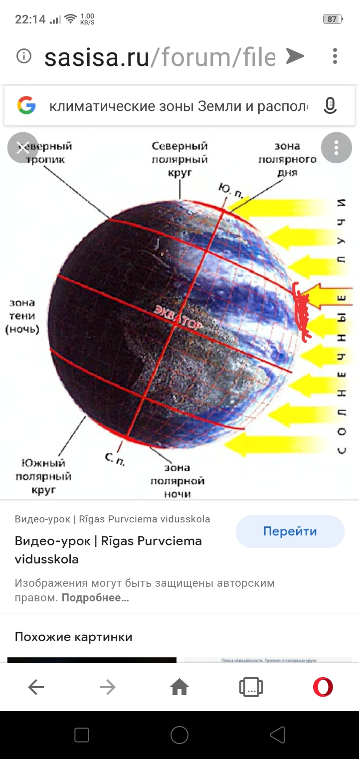 Вот нарисовал где падают перпендикулярно два лучика. Это разве экватор и северный тропик? Или полярный круг и малость южнее его кусочек умеренной зоны.
