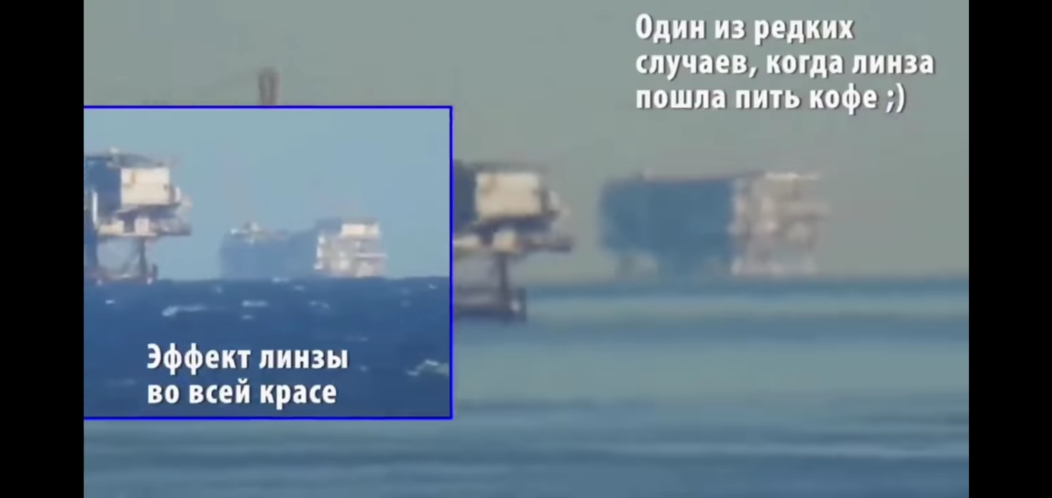 Вот скрин из видео, где показывается разность видимости платформы на воде.