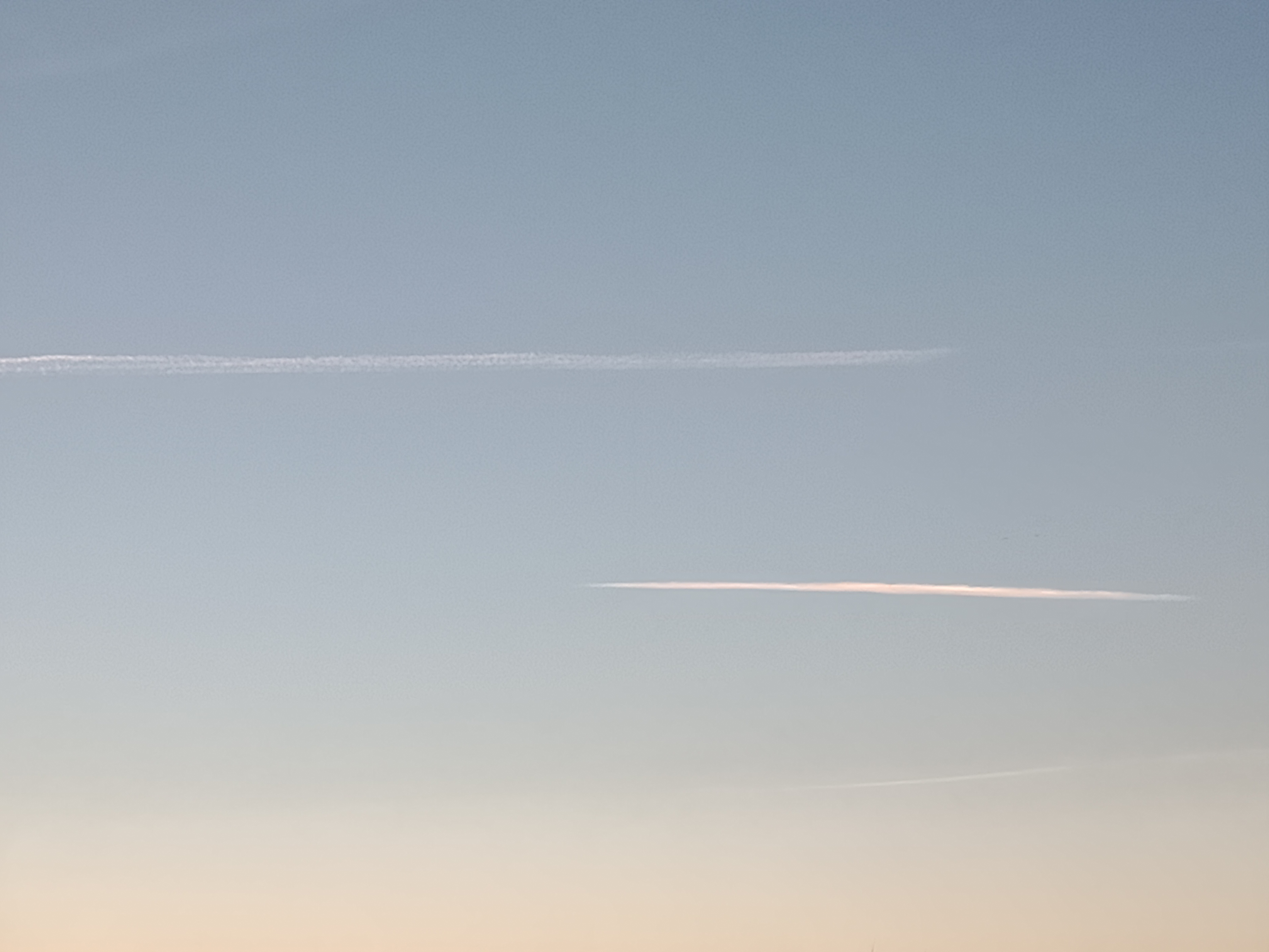 Вчера летали хаотично несколько самолётов западней от нас. Но не пускали химтрейлы по всему небу. А только на определённом участке. И сегодня какие-то длинные беконообразные тучи с просветами над нами, западней более сплошная облачность. А главное, выпала изморозь на траву, землю, деревья и есть какой-то непонятный запашок.