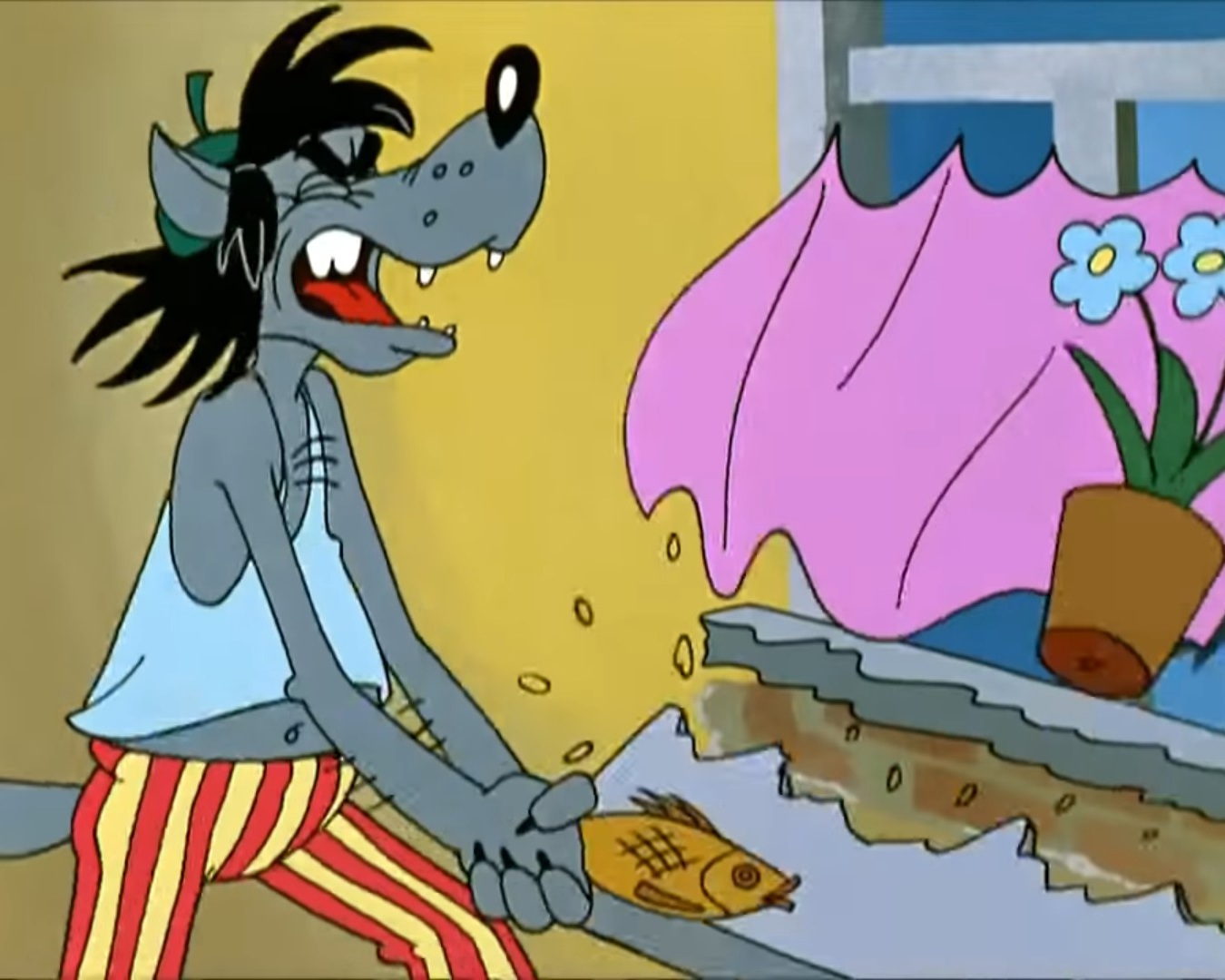 ) Вопрос 2. Что не мог разгрызть и очистить волк в мультфильме "Ну, погоди!", поломав этим подоконник и многие вещи в своём доме?