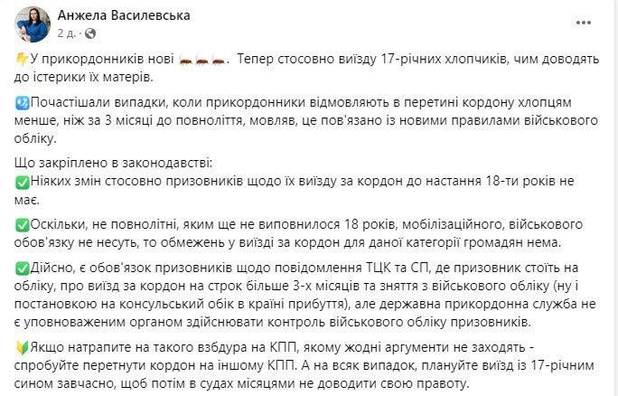 Адвокат Василевская напоминает, что госпогранслужба не является органом, выполняющим функции воинского учета, поэтому в случае отказа на пересечение границы рекомендует попытаться выехать через другой КПП.