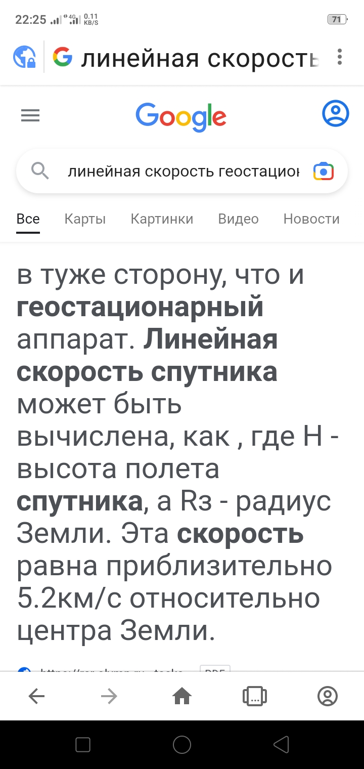 Вот скрин, погуглился насчёт линейной скорости геостационарного спутника.