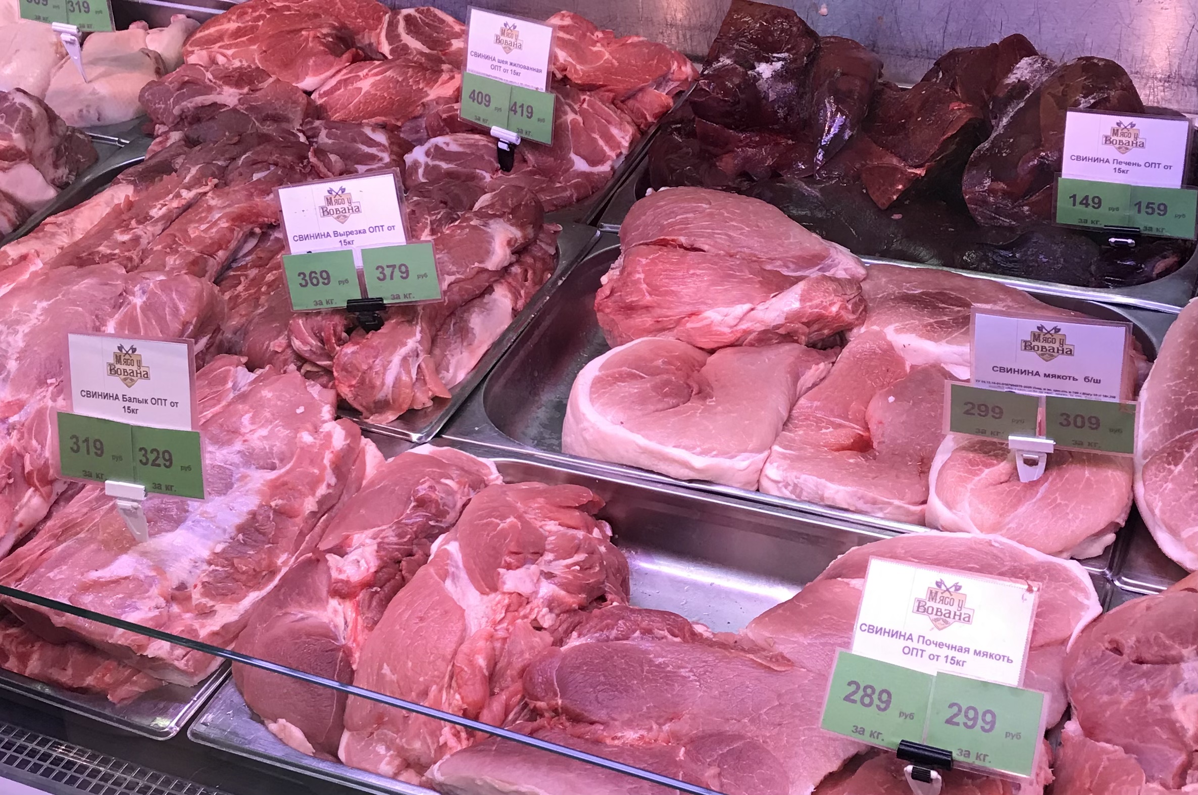 300-350 свинина, я просто редко в магазине беру