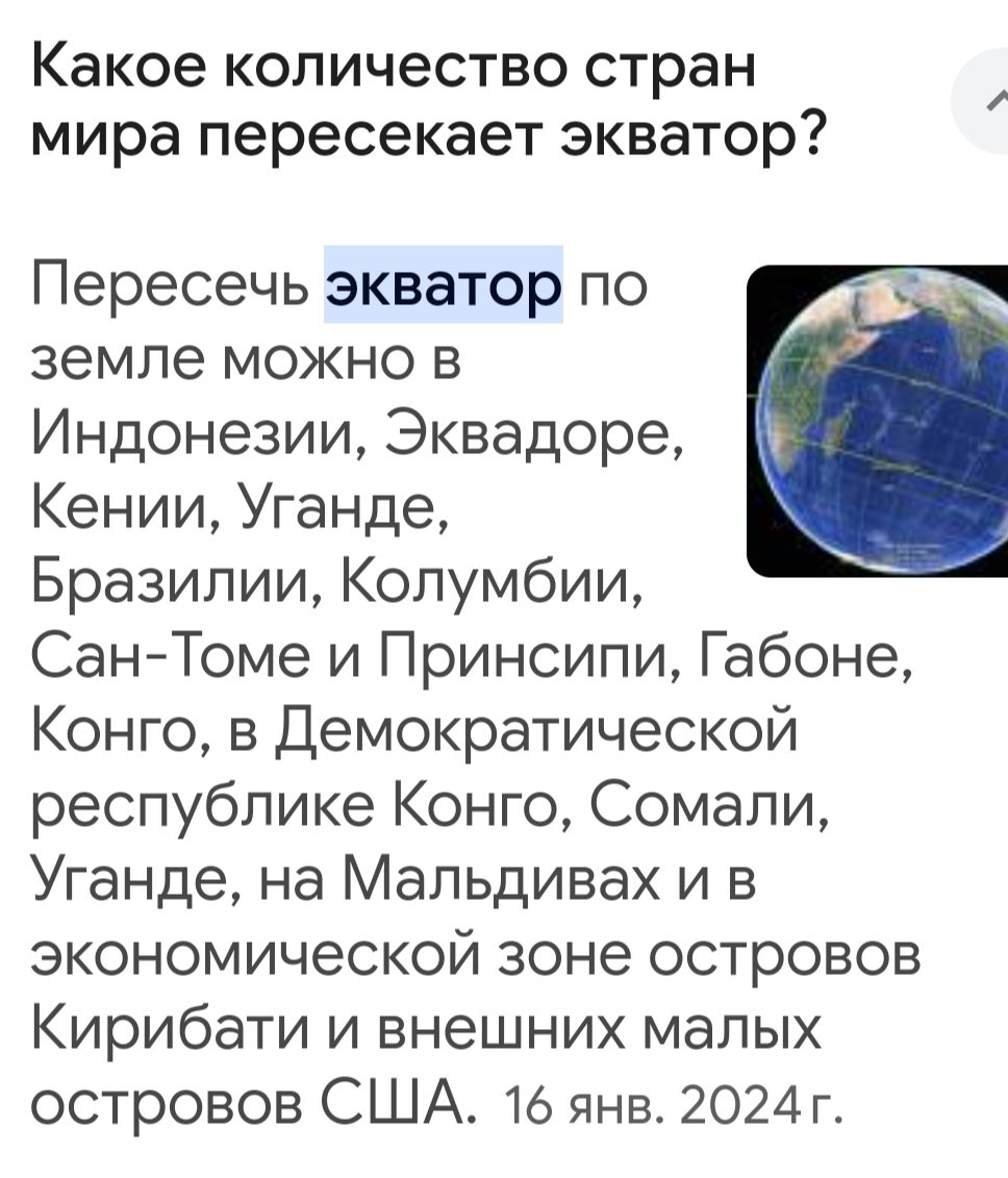 7. Через какую страну проходит экватор?