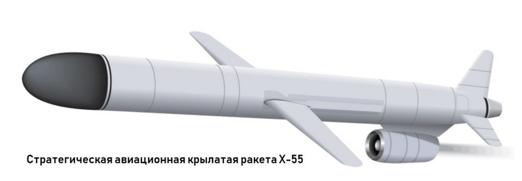 Вот пример, как выглядит ракета Х-55(или её улучшение Х-555). У Ту-95 два бомбоотсека по 9 метров длиной каждый. Так как к 1980-м годам произошёл пересмотр концепции стратегической авиации, уже не новые Ту-95 (последние сделаны в 1970-м) вместо простых бомбоотсеков оборудовали две барабанные установки с креплениями по 6 ракет в каждом барабане. Это позволяет самолёту сохранять дальность полёта 12 тысяч километров без потерь аэродинамики.