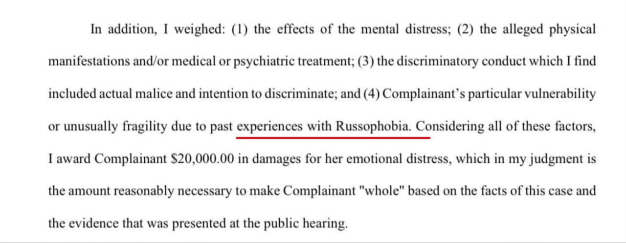 Это первое решение суда, когда в тексте приговора одной из причин названа русофобия ответчика.