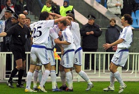 Милевский Ребров Ващук Федоров празнуют взятие ворот.