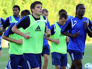 Динамо на тренеровке на переднем плане Вукоевич и Бангура