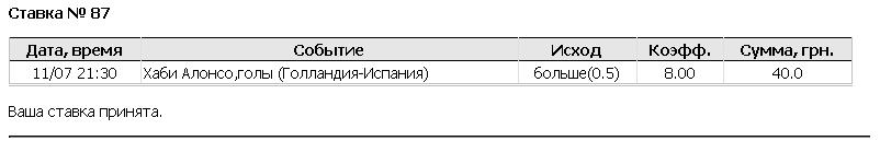 Кэф 1.65 на то,что голландия забьет гол,ставка 30руб