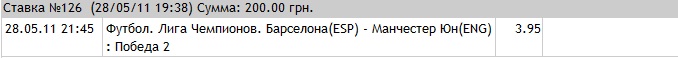 Победитель лиги чeмпионов: Манчестер Юн 2.64