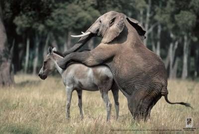 фотошоп. Слон крупнее, сломает хребет и не тянет его на другое животное.