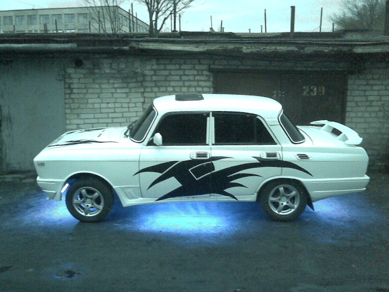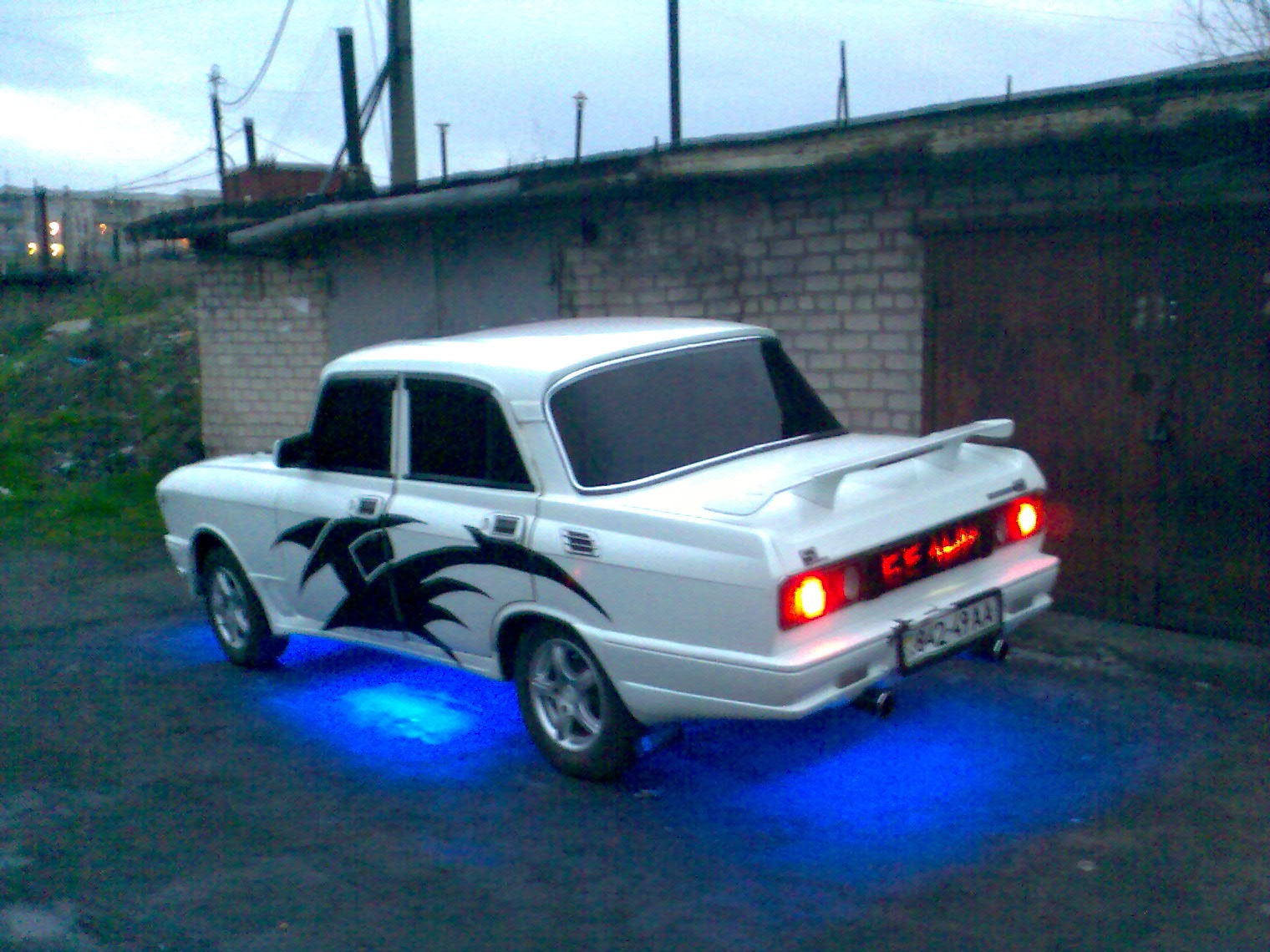 Белый 2140 с обвесом 2115. Вид сзади с включенной неоновой подсветкой.