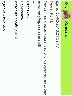 Выхухаль, В чат я и раньше не ходил а на форуме умные люди, но есть исключения, к сожалению. Такие как они за свою глупость и заплатят . А каятся не мне нужно, чел-овек :-D И Если докажите что аватар является оскарбительным я не против того чтоб учетку удалили :-D Мнение ввиде бана модератора который врядли знает кто есть антихрист мне не интересно.