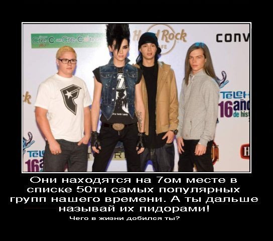 Они находядтя на 7-ом месте в списке 50ти в списке самых популярных групп нашего времени.А ты дальше называешь из пи**рами!А чего в жизни добился ты?!