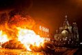 Акция в Петербурге продлилась около 20 минут. На место прибыли пожарные и полиция, которая задержала всех участников акции.