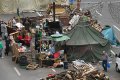 Палаточный городок на Майдане Незалежности был разбит в ноябре 2013 года. Киевские власти призывают активистов освободить площадь, чтобы восстановить движение по главным городским магистралям. В ответ активисты устраивают протестные акции и поджигают покрышки, игнорируя требования властей.