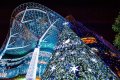 В дизайне также использованы хрустальные нити и украшения в виде шариков и снежинок. Внутри дерево полое и отделано стеклом. Высота елки — около 20 метров.