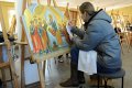 «Клеятся щиты, все состоит из нескольких деталей, доходит порой даже до 20 блоков иконостаса. Сначала собирается все у нас в ангаре», — поделился специалист мастерской «Палехские иконостасы» Андрей Смирнов.