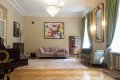 В квартире сохранилась историческая планировка: черный вход с кухней и бывшей комнатой для прислуги, анфиладное расположение комнат (дверные проемы находятся напротив друг друга, все помещения проходные) — гостиная, кабинет, две спальни, столовая, закрытая кухня, гостевая спальня, просторный холл. Окна выходят на три стороны.