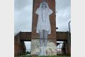 В приграничном городе Советске Калининградской области появилось новое граффити на стене старинной водонапорной башни бывших портовых сооружений. Об этом сообщает «Интерфакс».