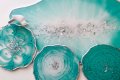 Прежде всего надо определиться с цветом, чтобы он сочетался с интерьером квартиры, подсказала мастерица. После этого специальные силиконовые формы плотно прикрепляются к поверхности. Затем смола соединяется с красителем и размешивается, после чего ее выливают на изделие. В итоге появляются уникальные узоры, которые растекаются по всей форме.